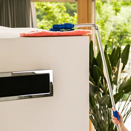 - Verbindung für Stange und Fenster und Spiegelmacher. Ermöglicht die einfache Reinigung von schrägen Oberflächen. Es erleichtert die Reinigung der Bereiche unter Stühlen, Tischen oder Betten. Im Falle des Fensterexpresses funktioniert er gut bei der Reinig