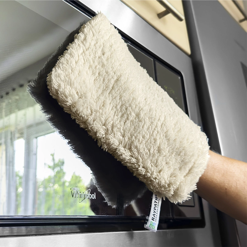 Handliches Set mit ökologischen Reinigungstüchern für umfassende Reinigung oberflächen, die keinen Kontakt mit großen Wassermengen vertragen. Sowohl für das Wohnzimmer als auch für die Küche geeignet. Der Reiniger ist nicht nur wirksam, sondern auch sehr einfach zuzubereiten. Befeuchten Sie die Handschuhe einfach nur mit Wasser und drücken Sie sie vorsichtig aus. Bereit! Sie können bereits jetzt mit der Bekämpfung des Flecks beginnen. Im Gegensatz zu herkömmlichen Methoden, die auf dem Einsatz von Chemikalien beruhen, basiert die NanoSilver-Reinigungstechnik von Raypath auf der Verwendung von nur einer kleinen Menge Wasser. Eine schnellere, effizientere und wirtschaftlichere Reinigung ist nur ein Teil der Vorteile dieses Kits; ebenso wichtig ist, dass keine schädlichen chemischen Präparate verwendet werden müssen. Auf diese Weise schützen wir uns nicht nur vor Allergenen, sondern tragen auch zum Schutz unserer Umwelt bei.Die Reinigungstücher sind mit Nano-Silber imprägniert so dass sie die Oberfläche auf natürliche Weise desinfizieren.