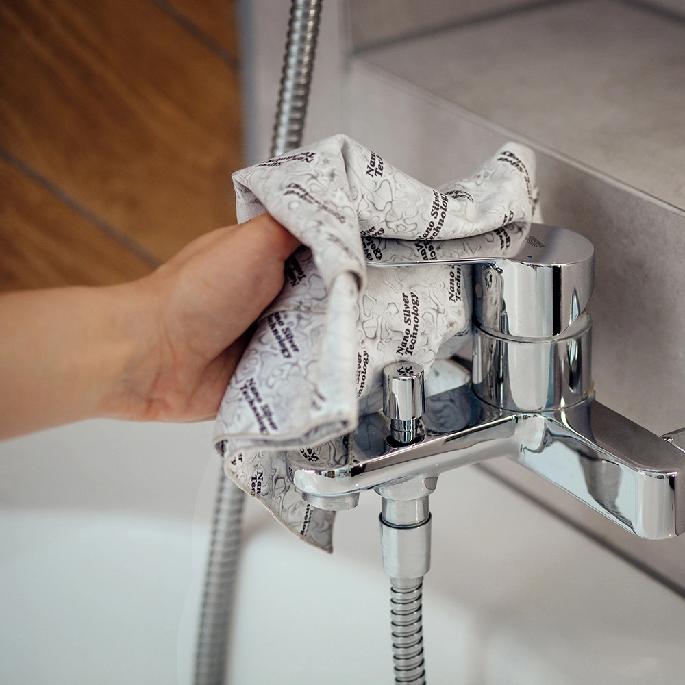 Handliches Set mit ökologischen Reinigungstüchern für umfassende Reinigung in der Küche und darüber hinaus. NanoSilver kann für die Reinigung von Küchengeräten (Spülen, Arbeitsplatten, Öfen, Glasscheiben zwischen Schränken, Dunstabzugshauben, Einbauküchen) und Badezimmern (Waschbecken, Badewannen, Armaturen, Duschen, Spiegel) verwendet werden Im Gegensatz zu herkömmlichen Methoden, die auf dem Einsatz von Chemikalien basieren, beruht die NanoSilver-Reinigungstechnik von Raypath auf der Verwendung von nur einer kleinen Menge Wasser. Eine schnellere, effizientere und wirtschaftlichere Reinigung ist nur ein Teil der Vorteile dieses Kits; ebenso wichtig ist, dass keine schädlichen chemischen Präparate verwendet werden müssen. Auf diese Weise schützen wir uns nicht nur vor Allergenen, sondern tragen auch zum Schutz unserer Umwelt bei.Die Reinigungstücher sind mit Nano-Silber imprägniert so dass sie die Oberfläche auf natürliche Weise desinfizieren.